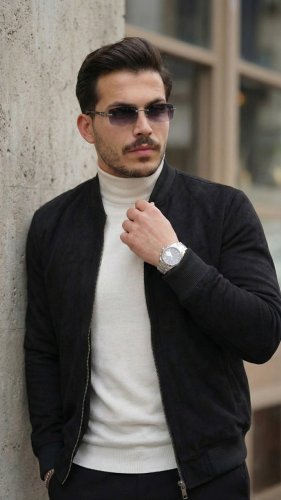 • Erkek Scuba Süet Kumaş Bomber Hırka